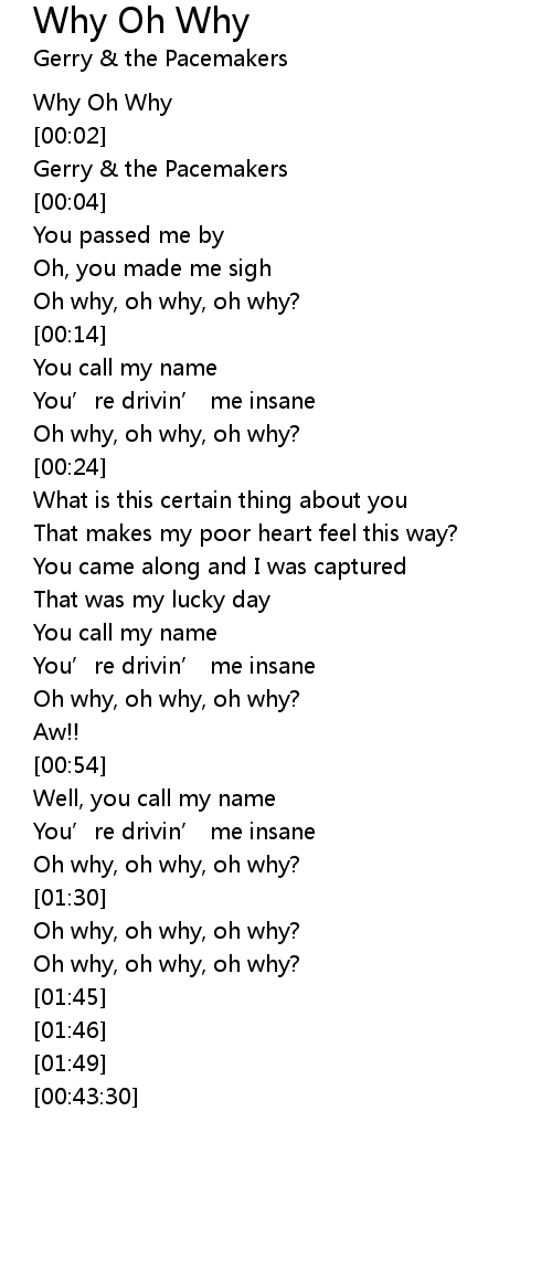 | [00:01] | Why Oh Why |