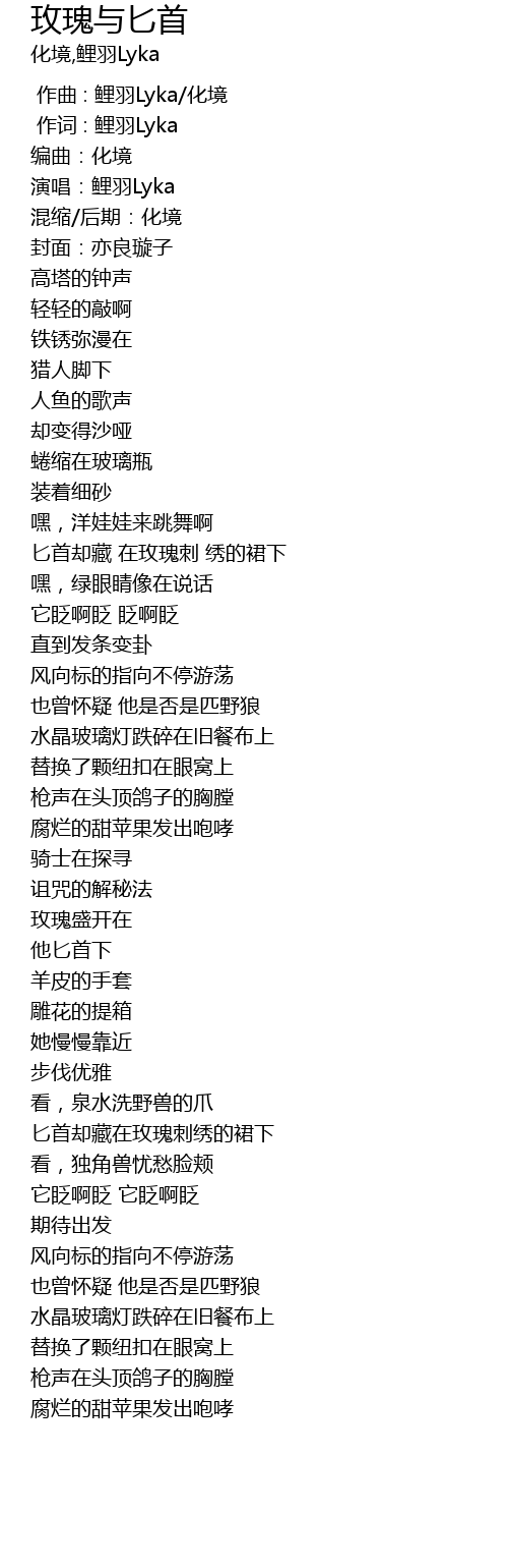 | [02:28.17] | 匕首却藏在玫瑰刺绣的裙下 |