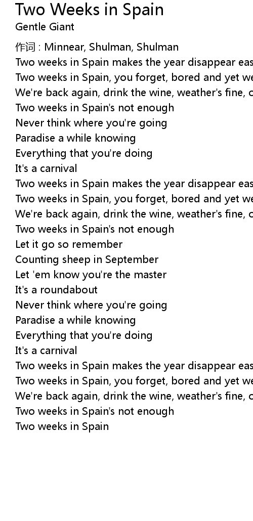 | Two weeks in Spain, you forget, bored and yet weary | |
