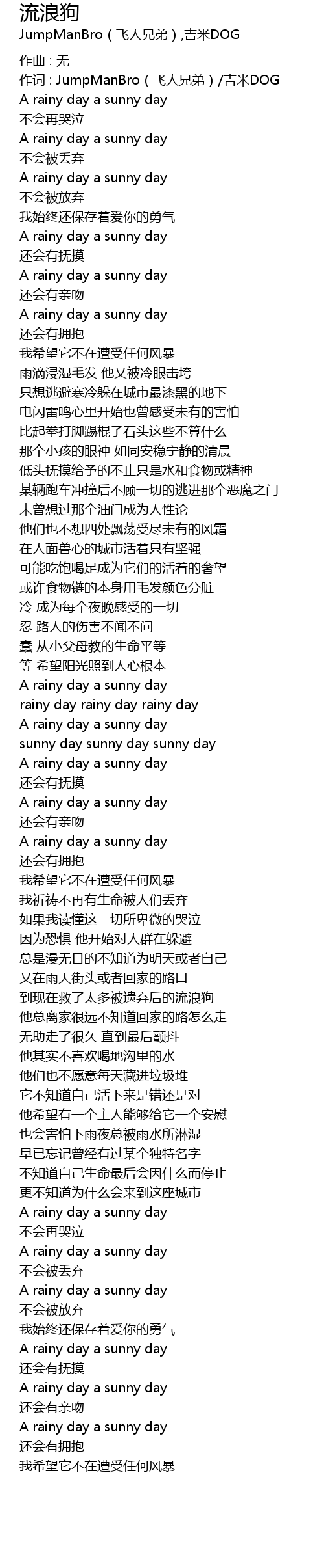 | 作词 : JumpManBro(飞人兄弟)/吉米DOG | |