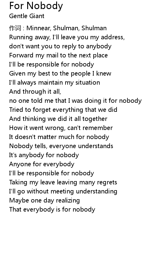 | Song | For Nobody |