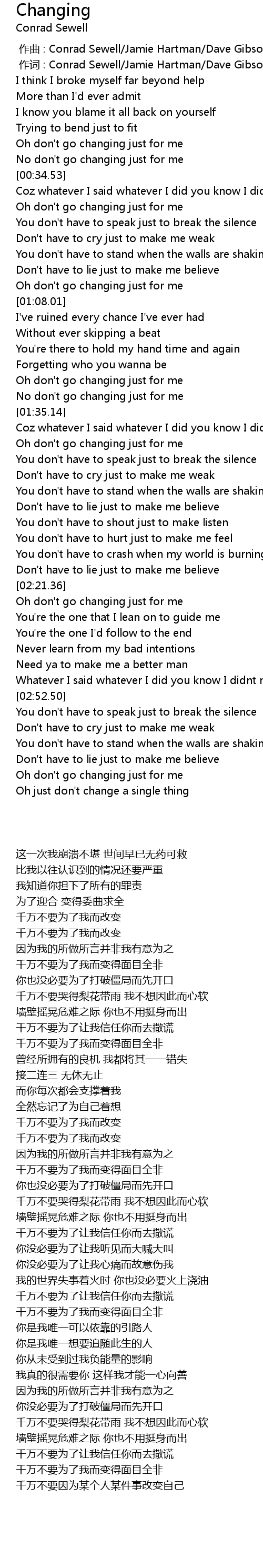 | [00:01.000] | zuo ci : Conrad Sewell Jamie Hartman Dave Gibson |