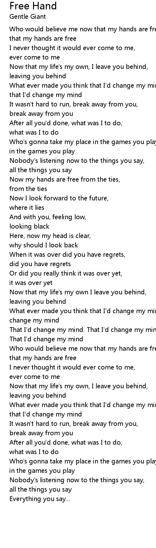 Now my hands are free from the ties, |