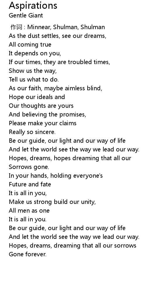 | [02:15.24] | Hopes, dreams, hopes dreaming that all our |