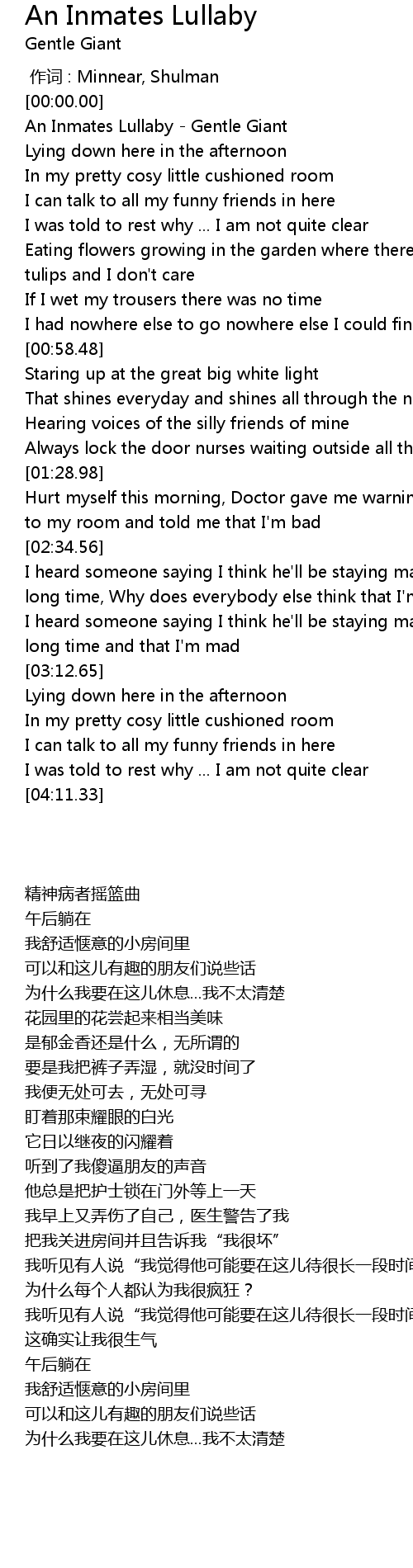 | [00:05.42] | An Inmates Lullaby Gentle Giant |