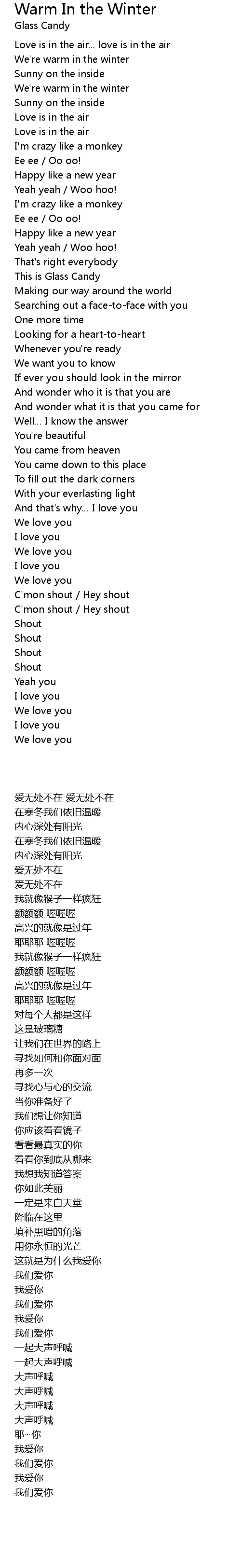 | [04:00.230] | C' mon shout Hey shout |