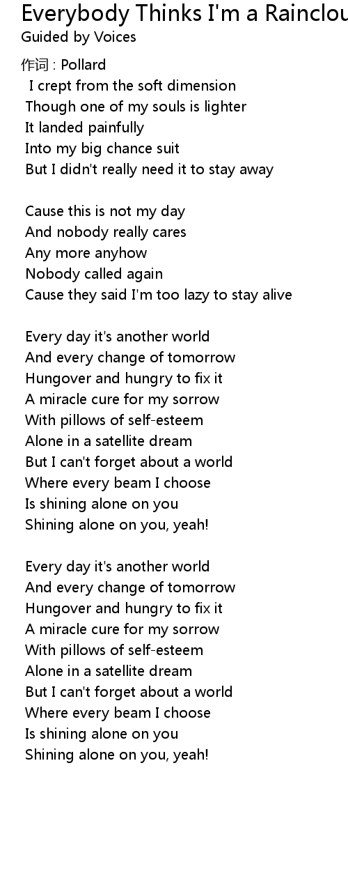 | Song | Everybody Thinks I'm a Raincloud (When I'm Not Looking) |