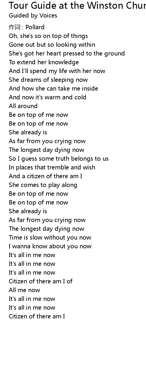 | Song | Tour Guide at the Winston Churchill Memorial |