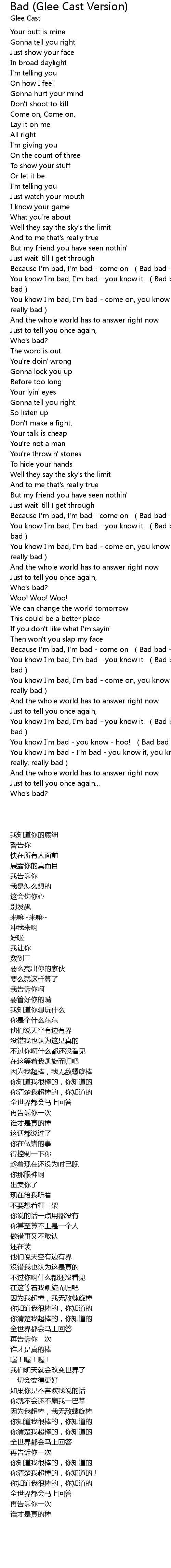 | [02:53.29] | You know I'm bad, I'm bad - you know it (Bad bad - really, really bad) |