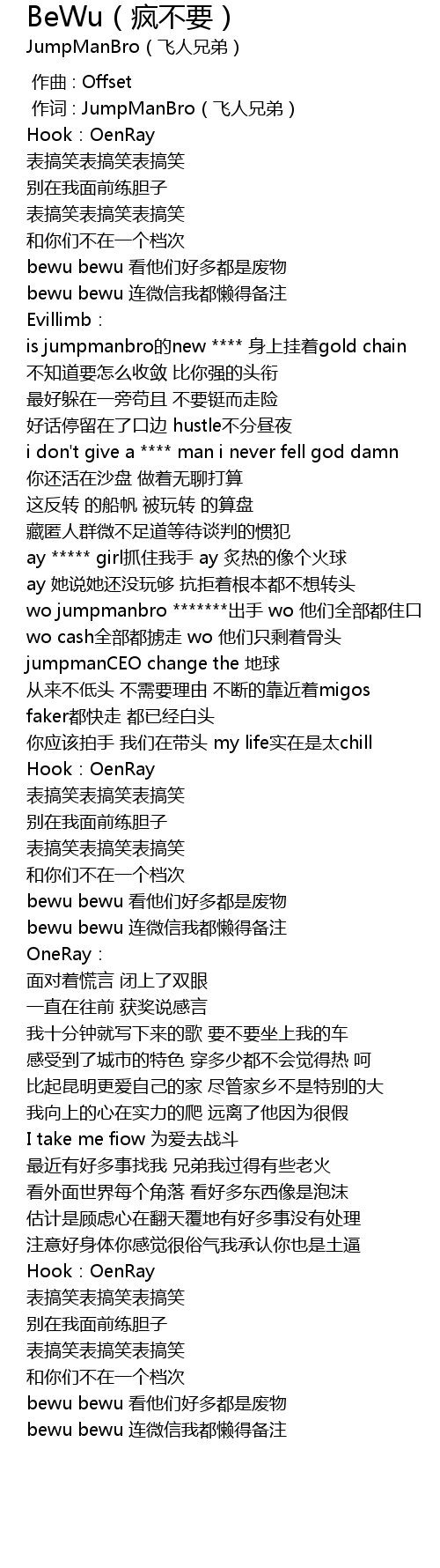 | [00:01.000] | 作词 : JumpManBro(飞人兄弟) |