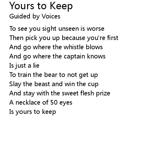| Song | Yours to Keep |