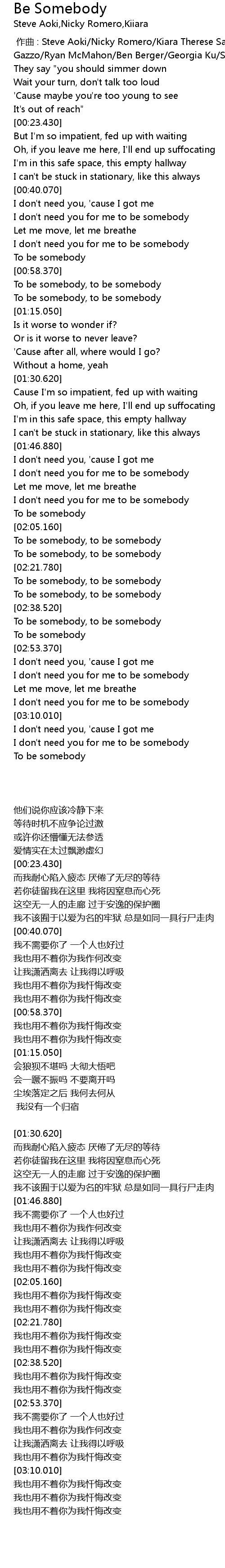 | [00:00.000] | zuo qu : Steve Aoki Nicky Romero Kiara Therese Saulters Mike Gazzo Ryan McMahon Ben Berger Georgia Ku Simon Wilcox |