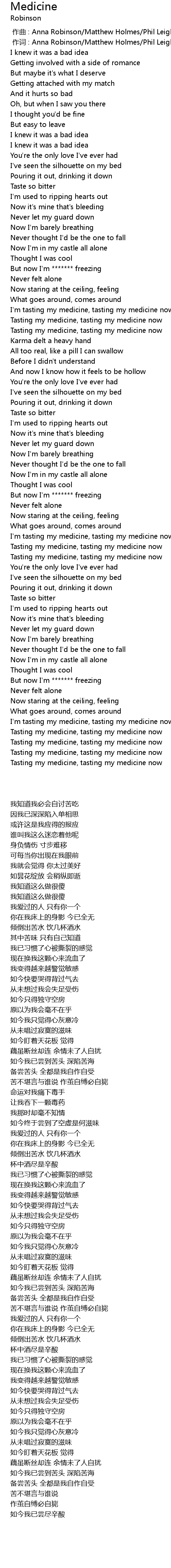 | [02:14.35] | Tasting my medicine, tasting my medicine now |