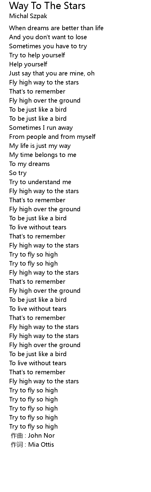 | [00:40] | Fly high way to the stars |