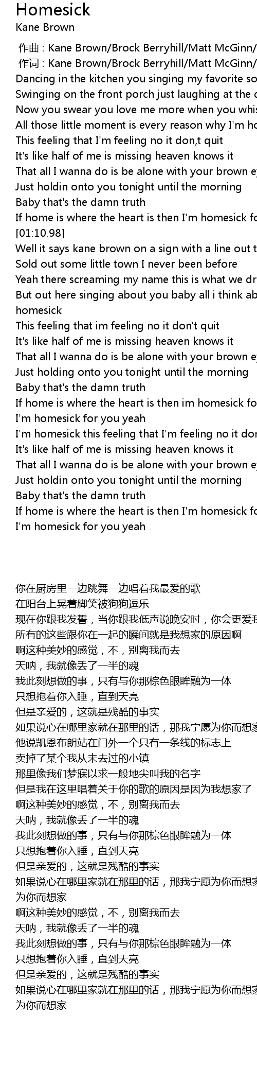 | [00:30.30] | All those little moment is every reason why I' m homesick |