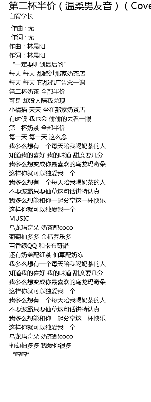 | [00:40.81] | 第二杯奶茶 全部半价 |