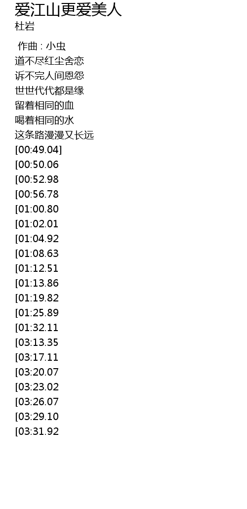 | [02:49.52][01:13.86] | 爱江山 更爱美人 |