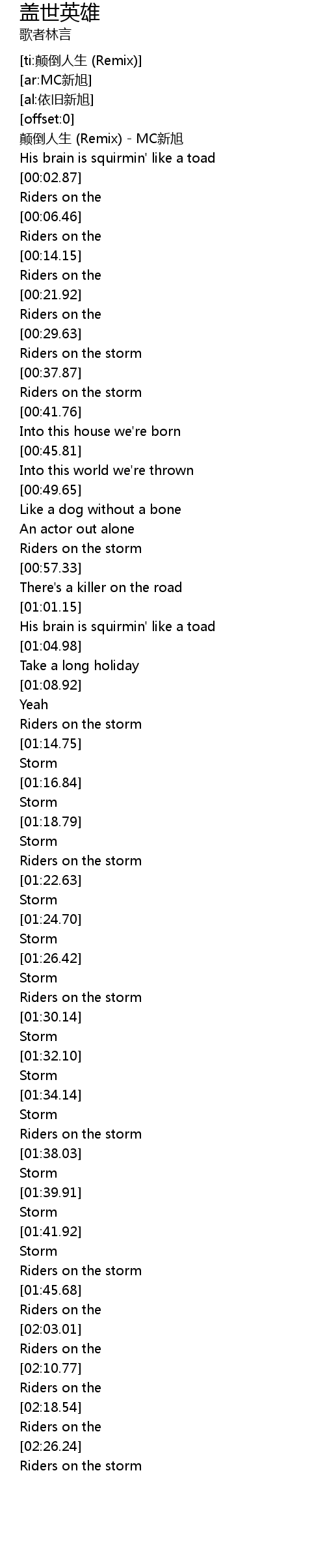 | [00:00.43] | 颠倒人生 (Remix) - MC新旭 |
