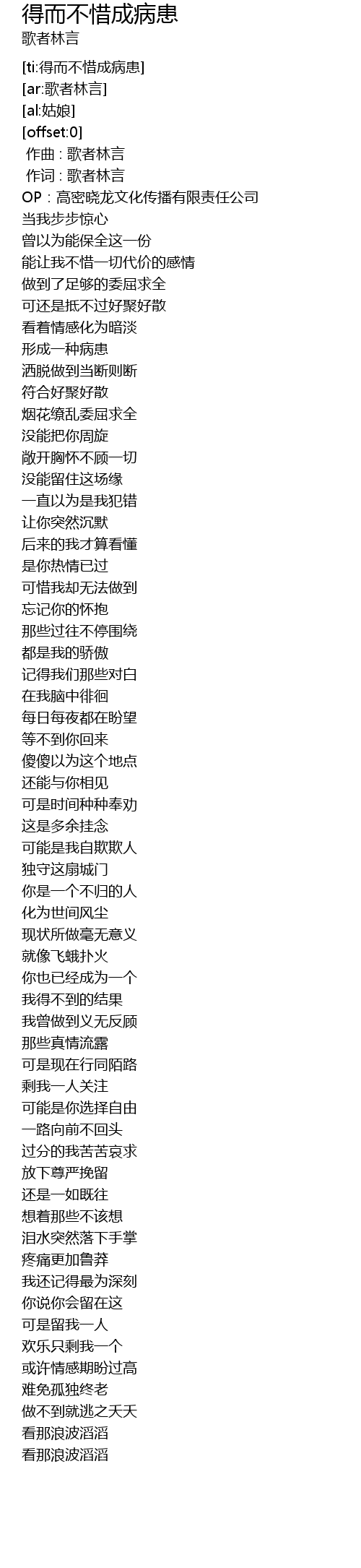 | [00:00.000] | zuò qǔ : gē zhě lín yán |