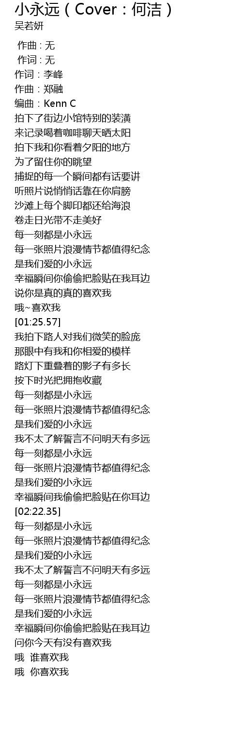 | [01:56.06] | shì wǒ men ài de xiǎo yǒng yuǎn |