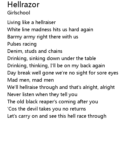 | We'll hellraise through and that's alright, alright | |