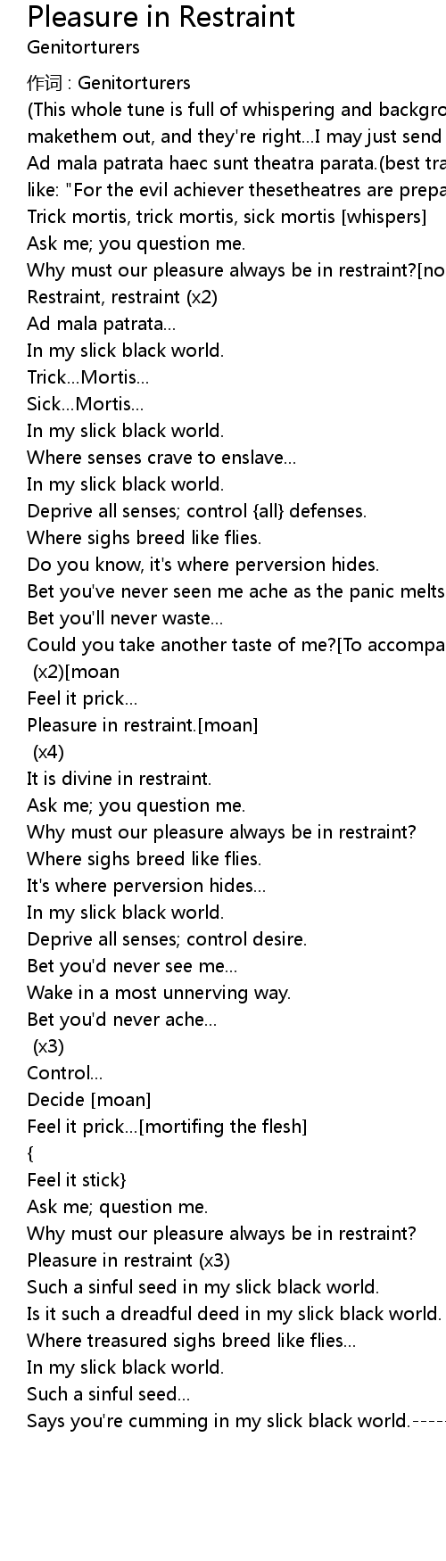 | Pleasure in restraint (x2) [mortifing the flesh]{ | |