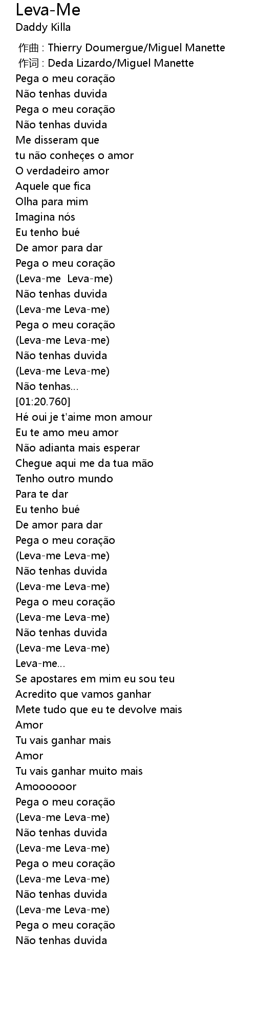 | [00:01.000] | zuò cí : Deda Lizardo Miguel Manette |