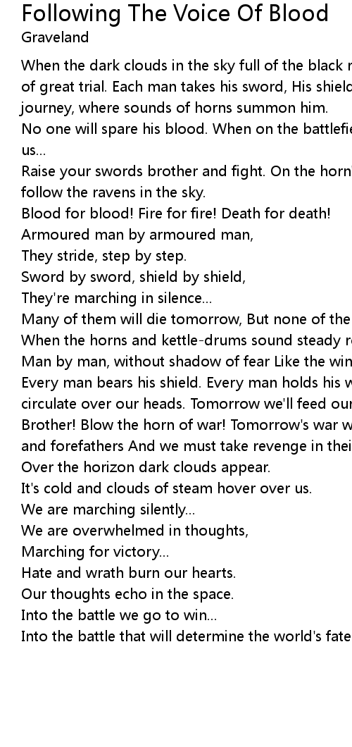 Raise your swords brother and fight. On the horn's sound we will move. We will |