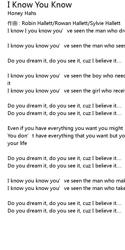 | I know you know you' ve seen the man who sees it but maybe doesn' t dream it | |