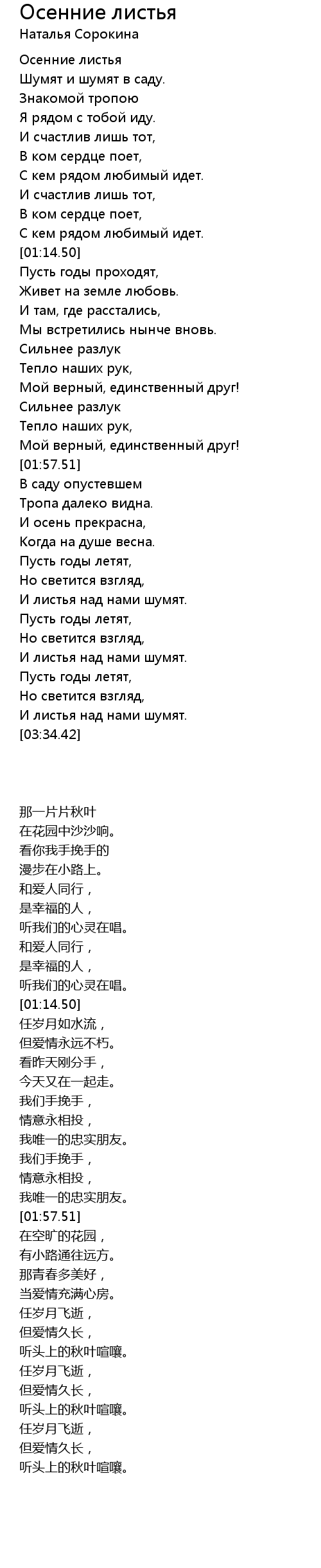 Осенние листья  Lyrics