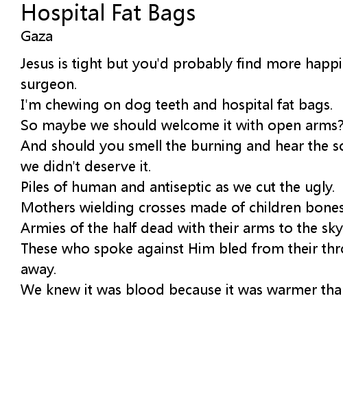 I'm chewing on dog teeth and hospital fat bags. |