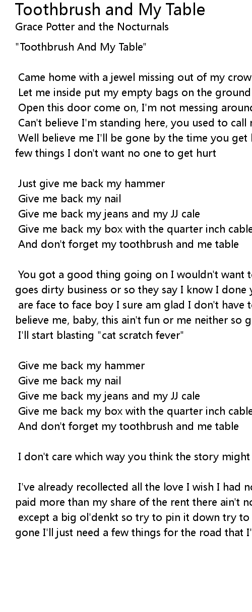 except a big ol'denkt so try to pin it down try to tear it up or try to get me gone I'll just need a few things for the road that I'll be on |