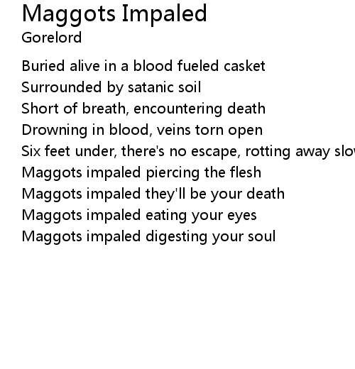 | Maggots impaled they'll be your death | |