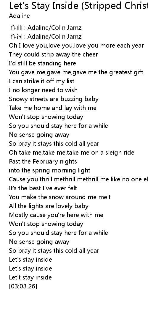 | [02:49.84] | Let's stay inside |