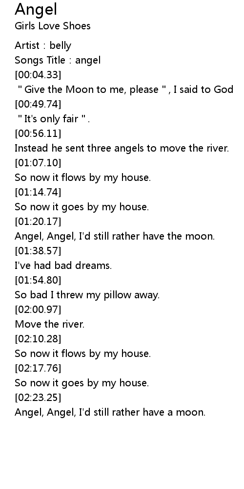 | [02:26.43] | Angel, Angel, I' d still rather have a moon. |