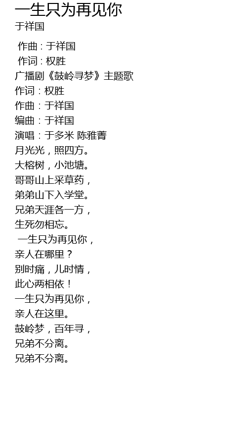 | [00:03.56] | 广播剧《鼓岭寻梦》主题歌 |