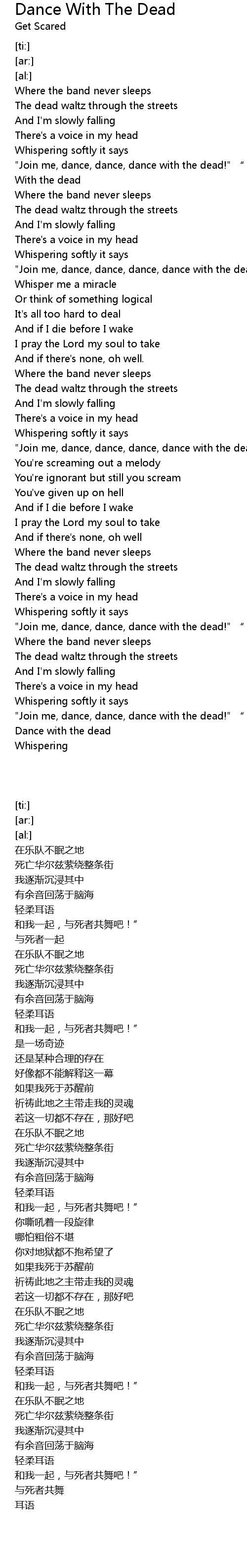 | [00:34.61] | " Join me, dance, dance, dance with the dead!" " |