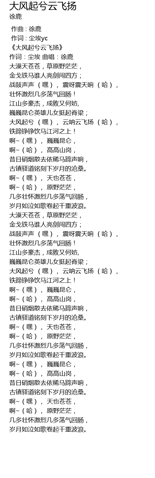 | [00:02.106] | dà fēng qǐ xī yún fēi yáng |