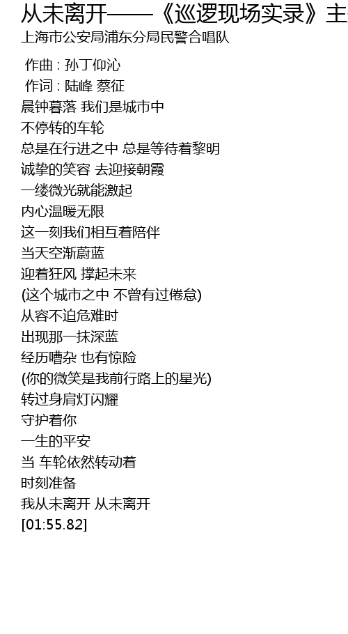| Song | 从未离开——《巡逻现场实录》主题曲 |
