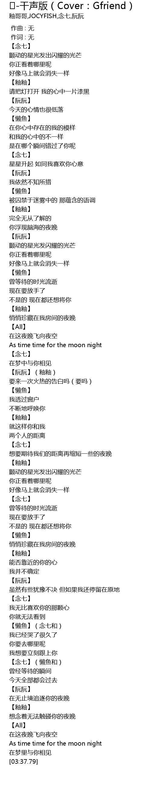 | [01:39.41] | As time time for the moon night |