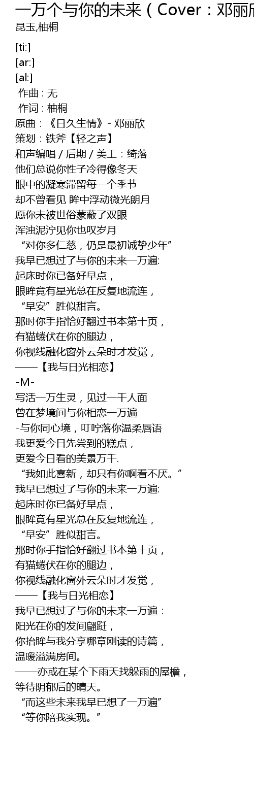 | [00:01.000] | zuò cí : yòu tóng |