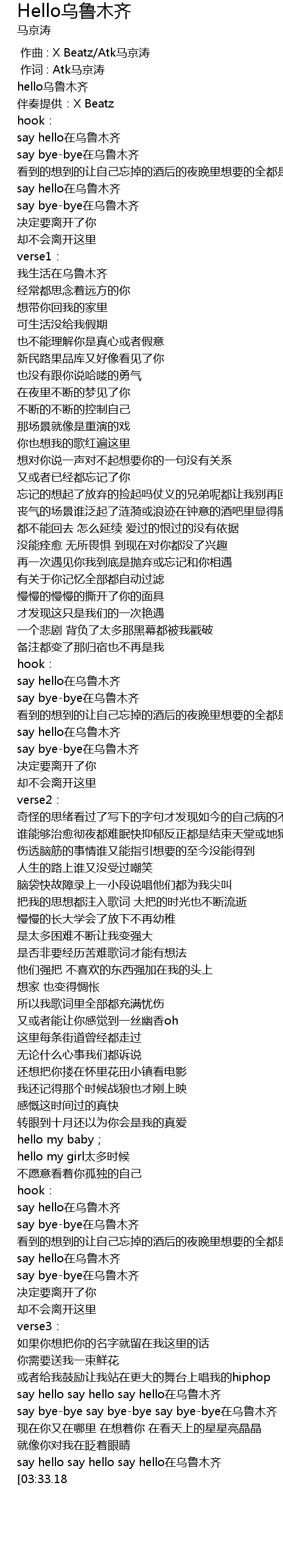 | [03:30.62] | say hello say hello say hello在乌鲁木齐 |