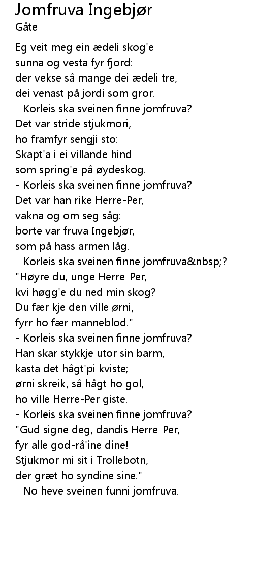 | Korleis ska sveinen finne jomfruva nbsp? | |