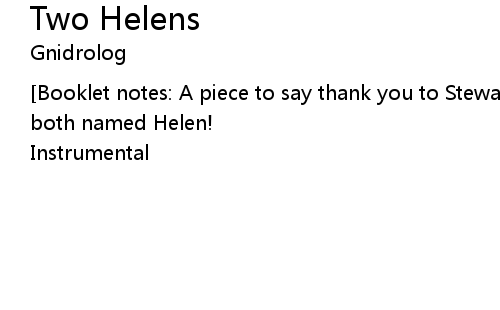 [Booklet notes: A piece to say thank you to Stewart & Colin's beautiful wives -