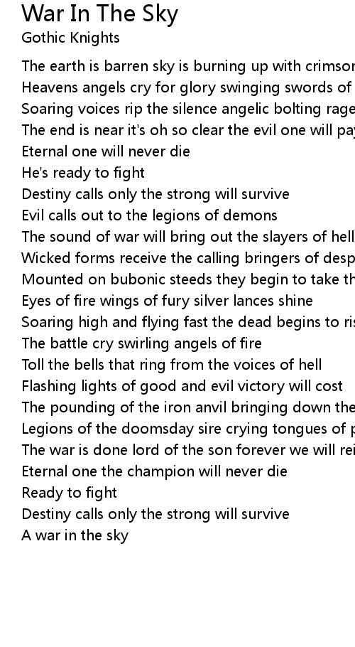 Heavens angels cry for glory swinging swords of pain |
