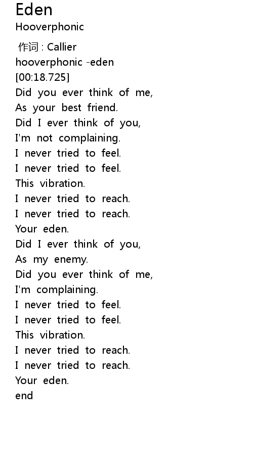 | [01:33.803] | Your eden. |
