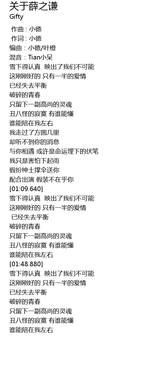 | [00:00.100] | biān qǔ: xiǎo dé yè chéng |