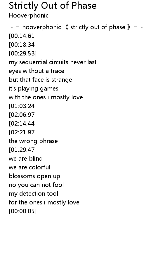 | [02:36.96][02:06.97][01:06.93] | strictly out of phase |