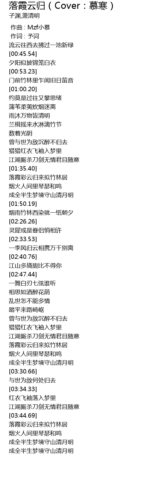 | [03:45.38] | 落霞彩云归来拟竹林居 |