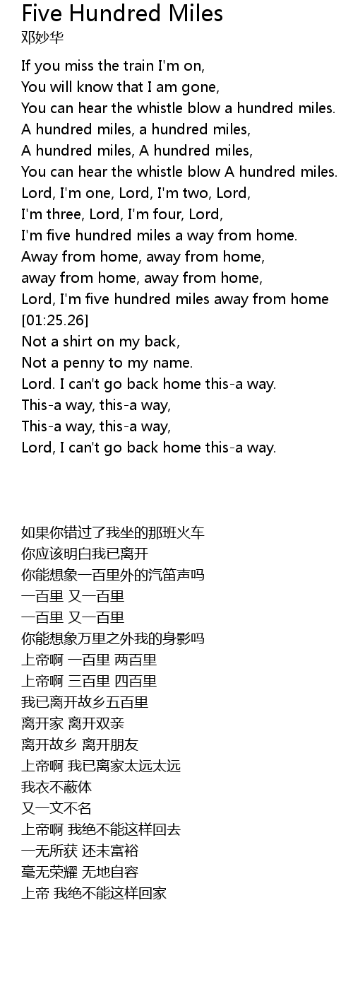 A hundred miles, A hundred miles, |